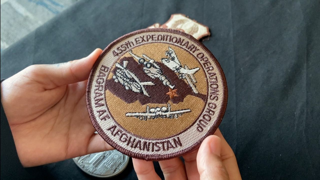 “In 2005, I deployed with the 455th Expeditionary Operations Group to Bagram, Afghanistan,” said Sanchez, holding a patch earned during her mission.