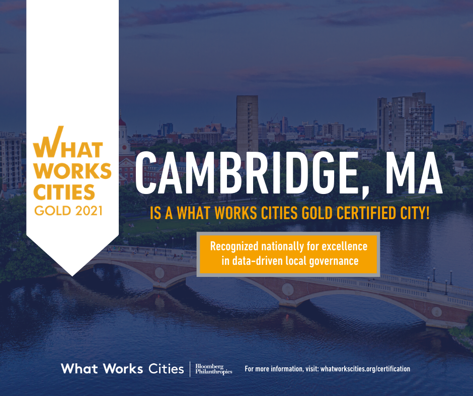 City of Cambridge Achieves 2021 What Works Cities Gold Certification. Cambridge Recognized as One of the Best American Cities at Using Data and Evidence to Improve Residents’ Lives
